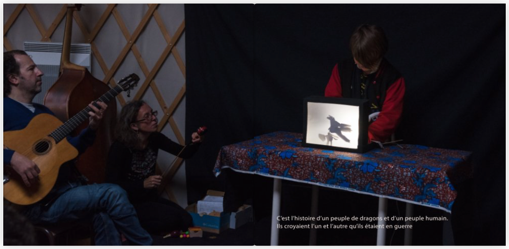 "HISTOIRES D'OMBRE" , livre issu du stage parent-enfant théâtre d'ombre et photographie, mené avec la Compagnie LES PASSANTES, en collaboration avec Marie Mainardis, comédienne metteur en scène. Au Café associatif Le Fait Tout - Montreuil - Octobre 2019.